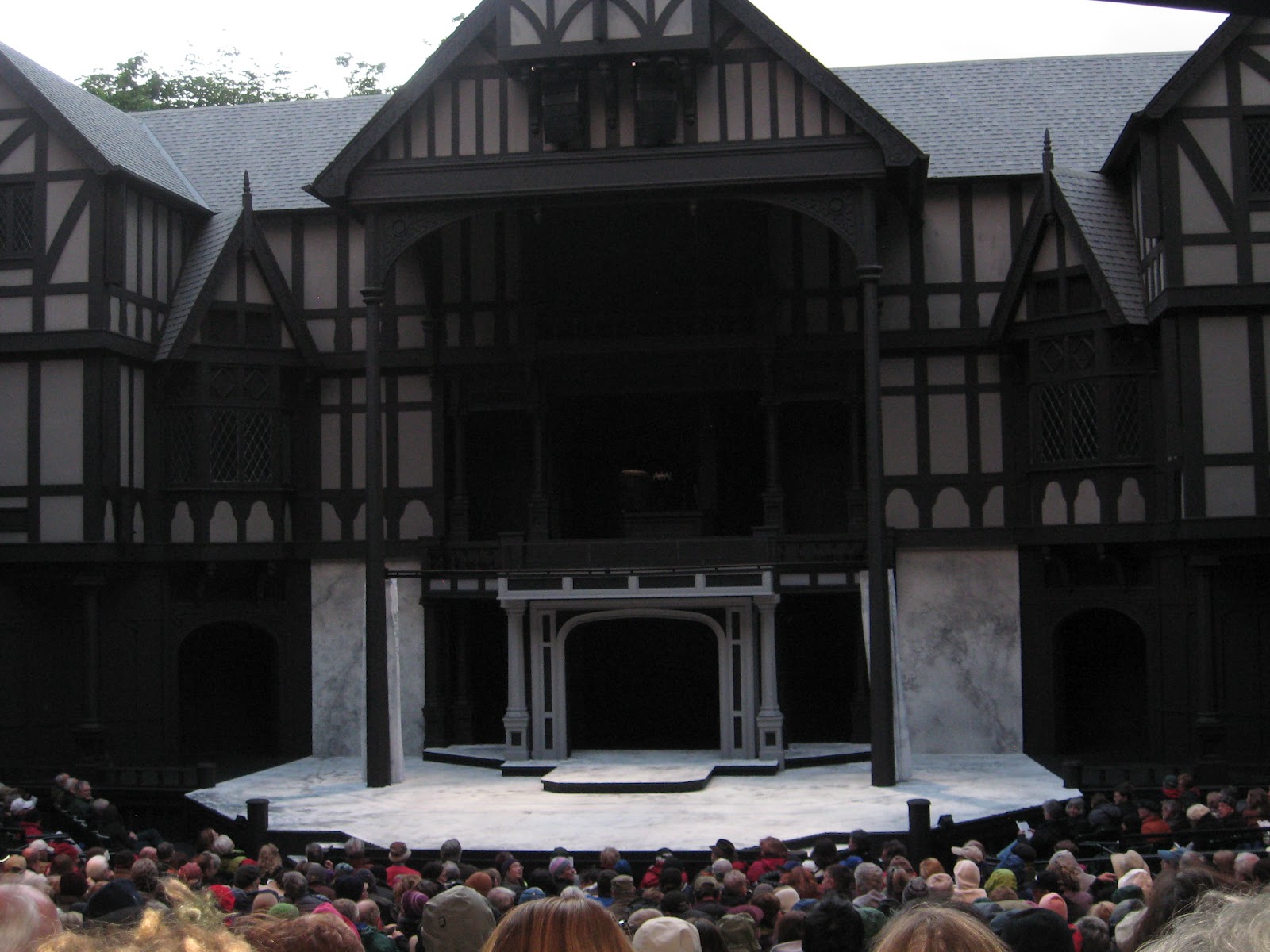Unfortunately, taking pictures (with or without flash) was strictly forbidden during the play. They didn't actually come out and SAY that they would send one of Henry V's guards out into the audience to confiscate your camera and then pound it into smithereens with their heavy boots, but that was the general spirit of it, so I just took this one shot before it got too dark.