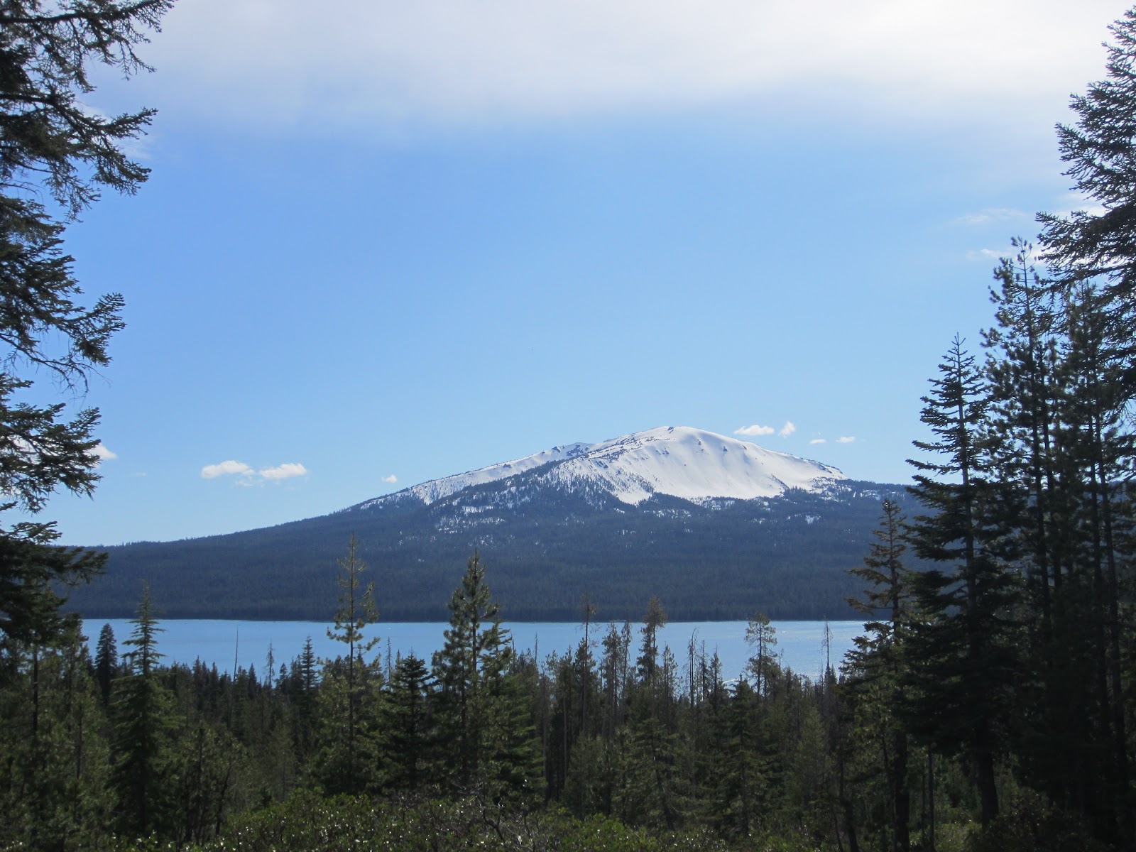 We had our one really fancy meal here, at the lodge at Crater Lake. Buddy asked about seventeen times if we could do the hike down to the mountain (elevation difference = about 900 feet, in the snow, so NO) and swim in Crater Lake (an even bigger NO). After that, we took a leisurely drive up through Bend, enjoying the novel sensation of seeing all our familiar eastern horizon mountains from the other side, and at much closer range. We stayed near Detroit Lake for the last night of the trip, and I managed to squeeze a couple more shots' worth of battery life out of my camera:
